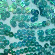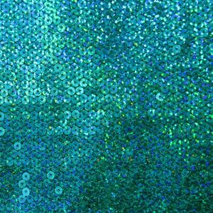 5MM HOLOGRAPHIC TURQUOISE SEQUINE SEWN ON TURQUISE COLOR STRETCH MESH.