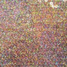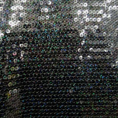 5 MM HOLOGRAPHIC SEQUINE SEWN ON BLACK COLOR STRETCH MESH.