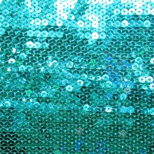 5MM TURQUOISE SEQUINE SEWN ON TURQUISE COLOR MESH.
