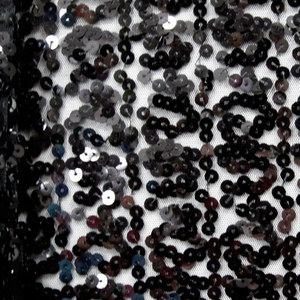 5MM BLACK SEQUINE SEWN ON COTTON POLY SPANDEX