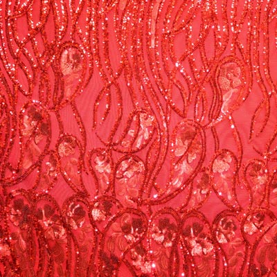 TWO TONE SEQUINE MATTE AND SHINY SEWN ON 100 % RED COLOR POLYESTER MESH . USAGE : COSTUME , DANCE , DRESS FOR SPECIAL OCCASION . ( SH-JT-011 )