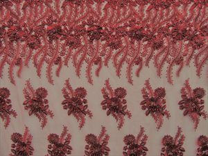 HEAVY EMBROIDERY FLOWER DESIGN WITH HAND MADE BEADED LACE SEWN ON 100 % POLYESTER MESH. USAGE : COSTUME , DANCE , DRESS FOR SPECIAL OCCASION .