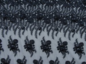 HEAVY EMBROIDERY FLOWER DESIGN WITH HAND MADE BEADED LACE SEWN ON 100 % POLYESTER MESH. USAGE : COSTUME , DANCE , DRESS FOR SPECIAL OCCASION .
