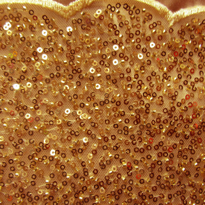 GOLD COLOR SEQUINE AND PEARL HAND MADE BEDADE LACE WITH GOLD COLOR MESH.