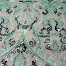 WHITE COLOR SEQUINE AND PEARL HAND MADE BEDADE LACE WITH WHITECOLOR MESH.