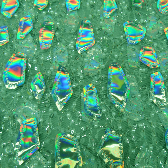 IRRIDATION SILVER SEQUINE WITH PEARL BEATS SEWN ON WITH TULL MESH