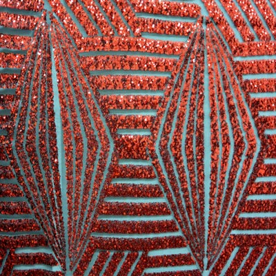 2MM RED COLOR SEQUINE SEWN ON 95 % POLYESTER 5 % RED COLOR SPENDEX TULL MESH . USAGE : COSTUME , DANCE , DRESS FOR SPECIAL OCCASION .