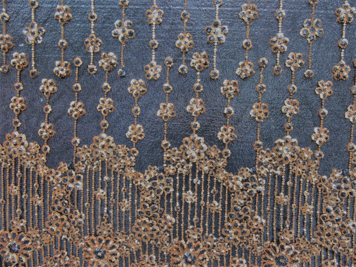 NON STRETCH SEQUINE SEWN ON 100 % POLYESTER MESH.