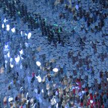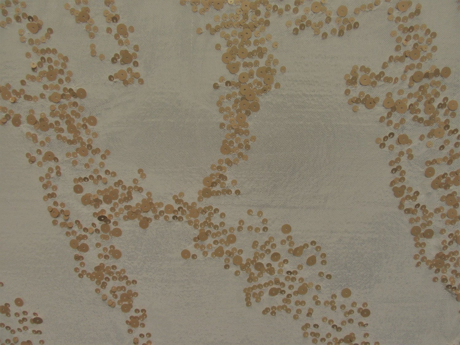 STRETCH GRAY COLOR SEQUINE SEWN ON BEIGE COLOR MESH .