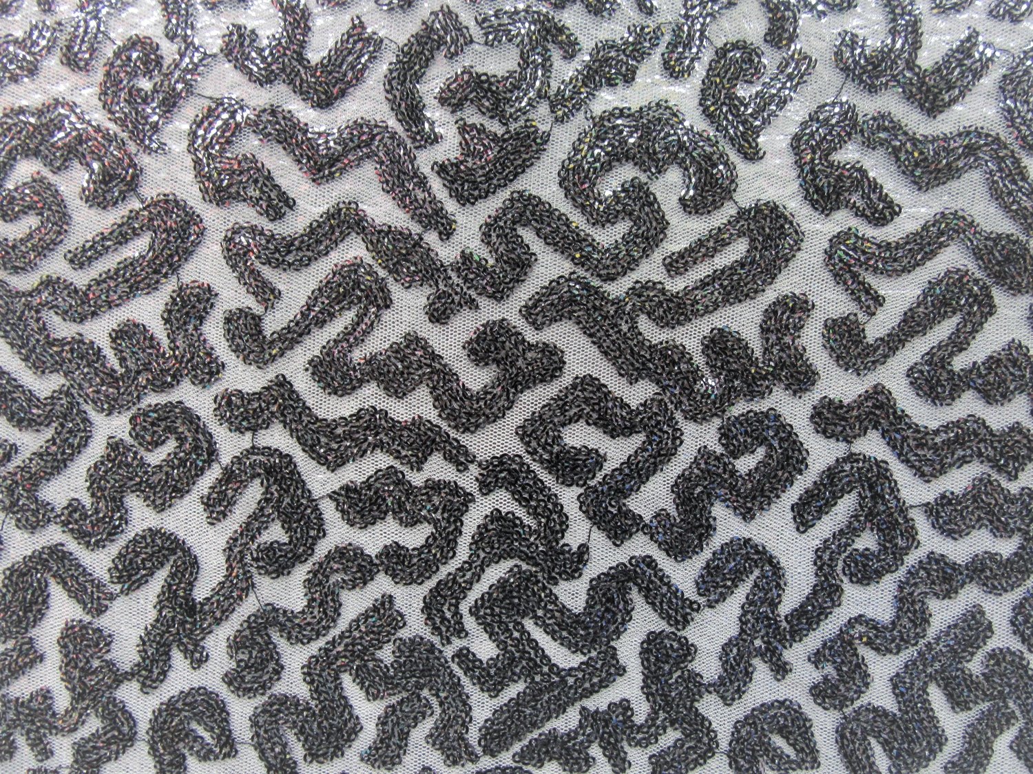 NON STRETCH GRAY COLOR SEQUINE SEWN ON BEIGE COLOR MESH ..