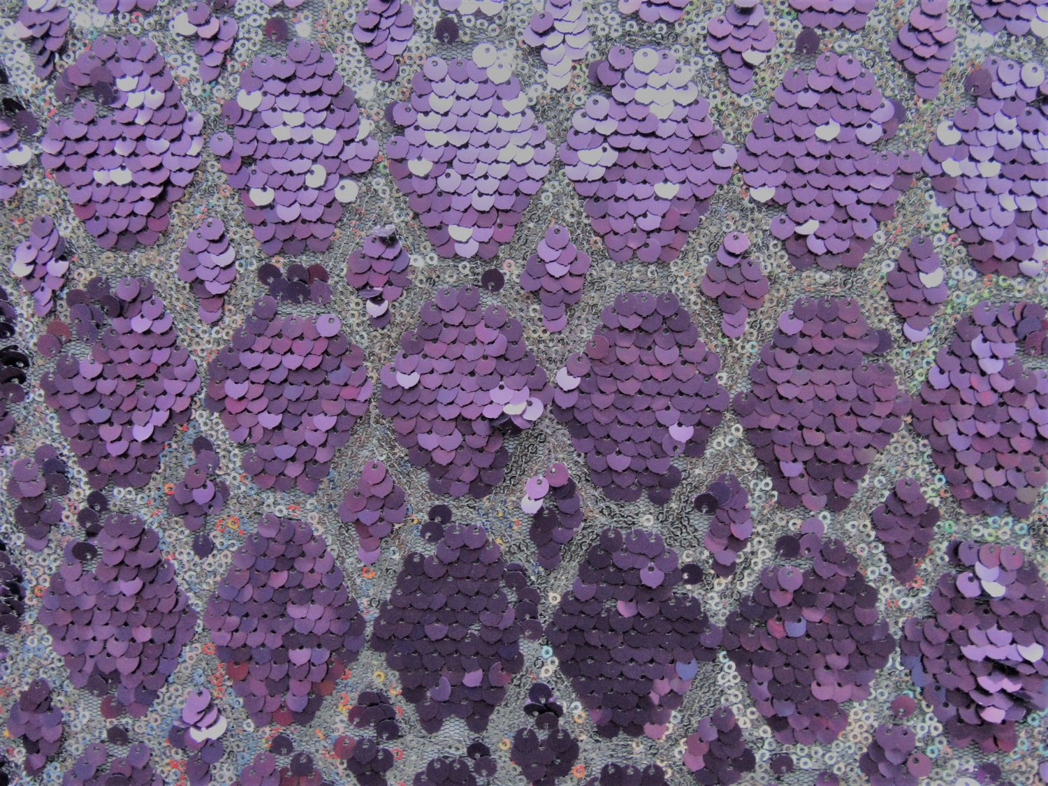 NON STRETCH SEQUINE WITH PURPLE MESH.
