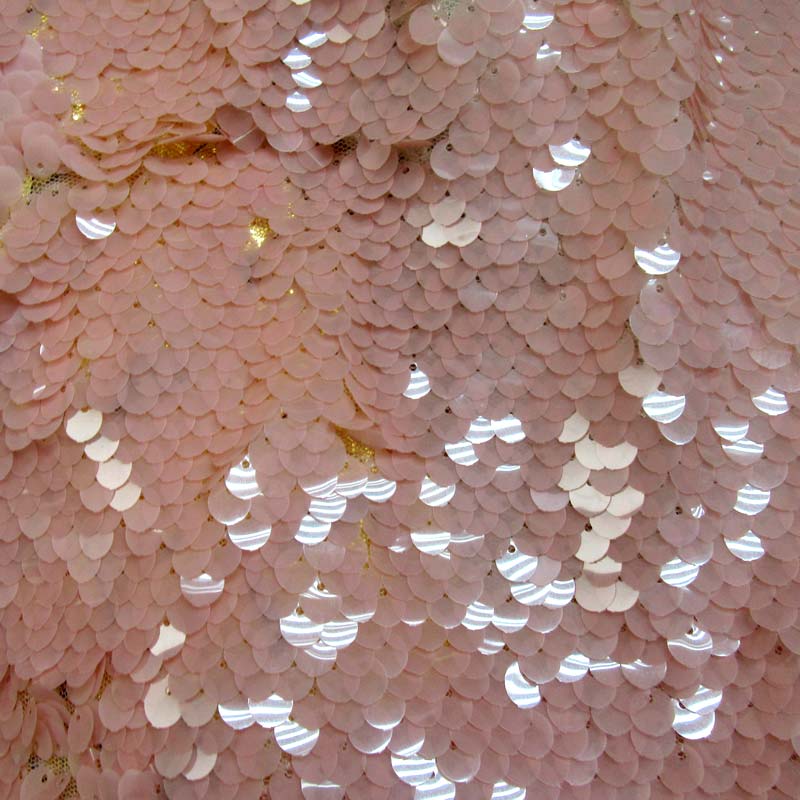 5MM PEACH COLOR REVERSIBLE SEQUIN WITH PEACH COLOR MESH.