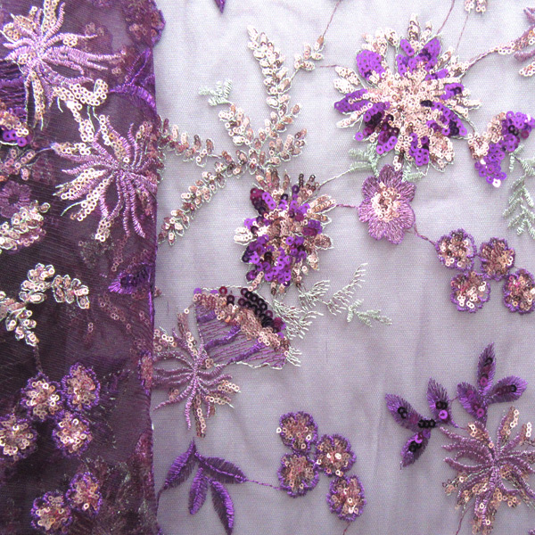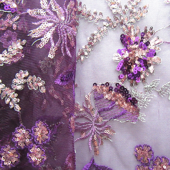 EMBROIDERY DESIGN WITH SEQUINE SEWN ON 100% POLYESTER TTULL MESH.