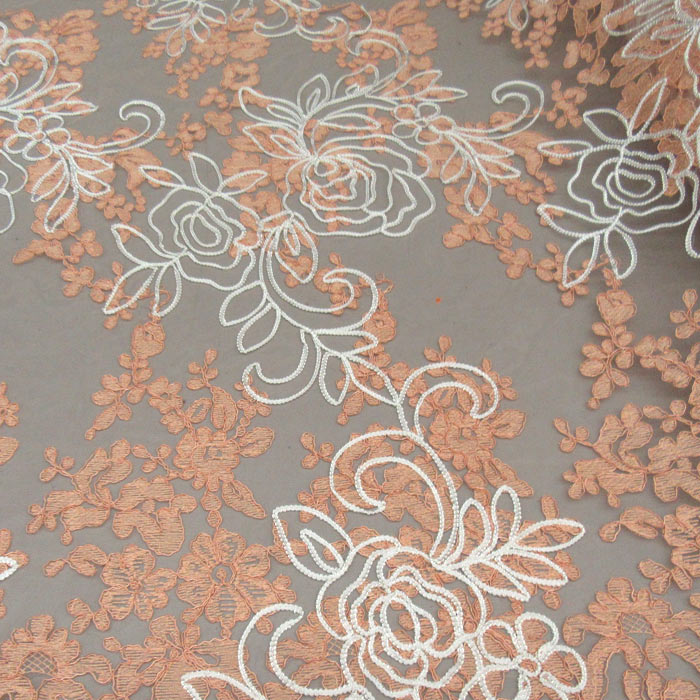 EMBROIDERY FLOWER SEWN ON REGULAR MESH.