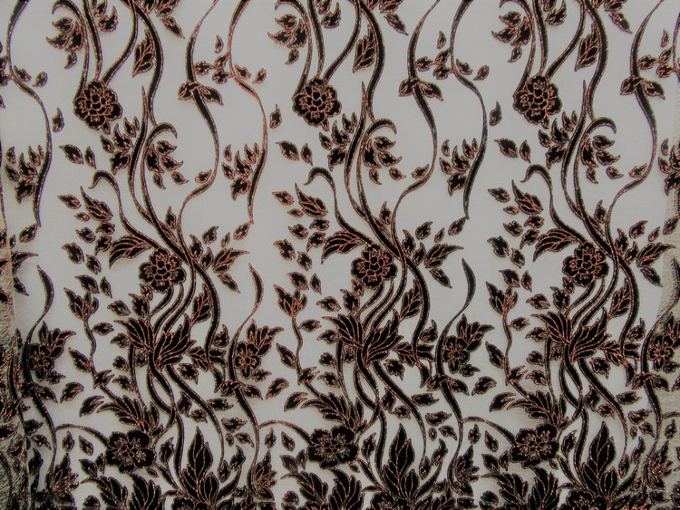 FLORAL WEAVY DESIGN WITH GLITTER FOIL SEWN ON 100 % POLYESTER MESH