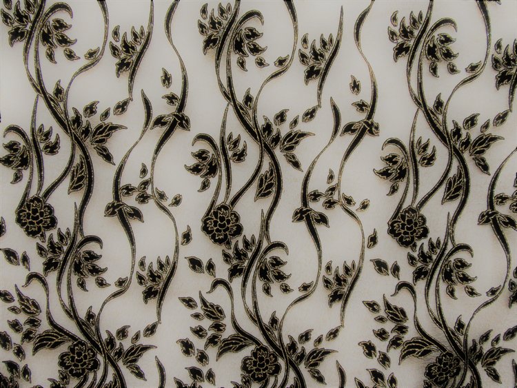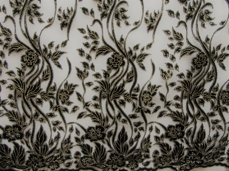 FLORAL WEAVY DESIGN WITH GLITTER FOIL SEWN ON 100 % POLYESTER MESH