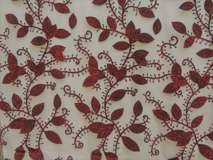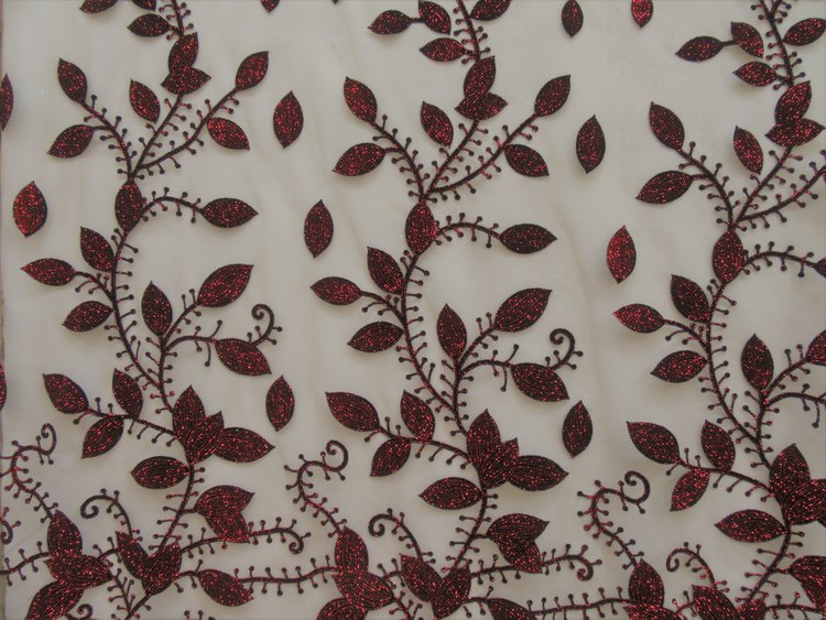 ALL OVER LEAF DESIGN SEWN ON 100 % P0LYESTER BEIGE COLOR TULL MESH