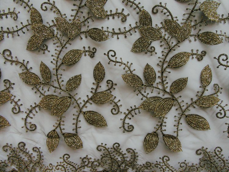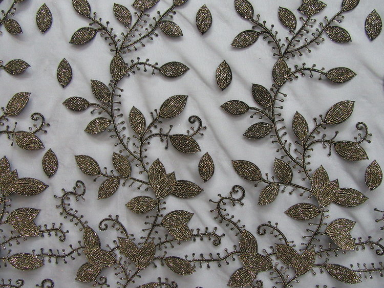 ALL OVER LEAF DESIGN SEWN ON 100 % P0LYESTER BEIGE COLOR TULL MESH