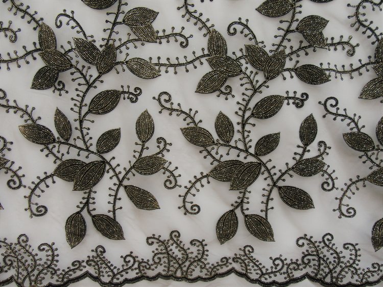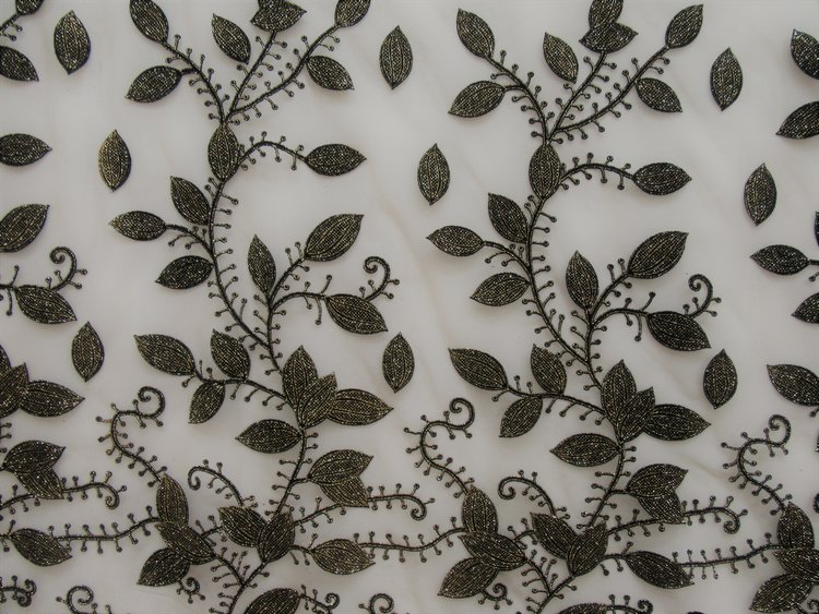 ALL OVER LEAF DESIGN SEWN ON 100 % P0LYESTER BEIGE COLOR TULL MESH