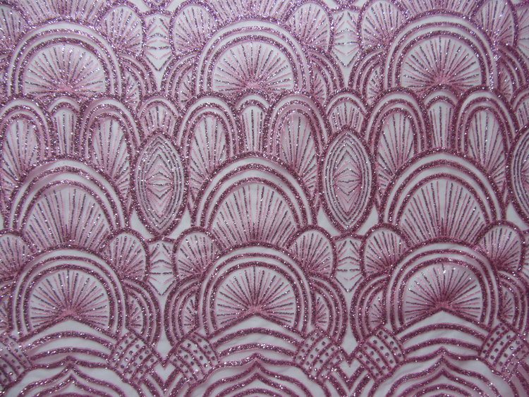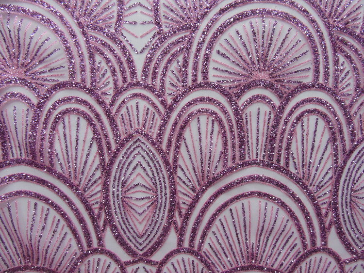 PINK/PEARL COLOR GLU GLITTER SEWN ON 100 % POLYESTER PINK COLOR MESH .