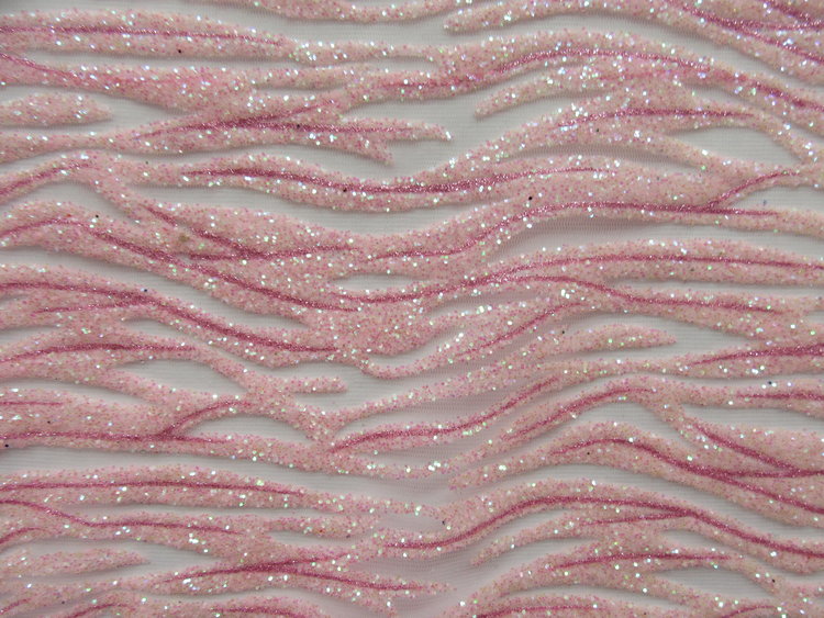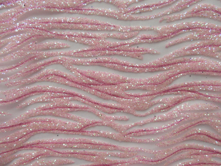 PINK/PEARL COLOR GLU GLITTER SEWN ON 100 % POLYESTER PINK COLOR MESH .