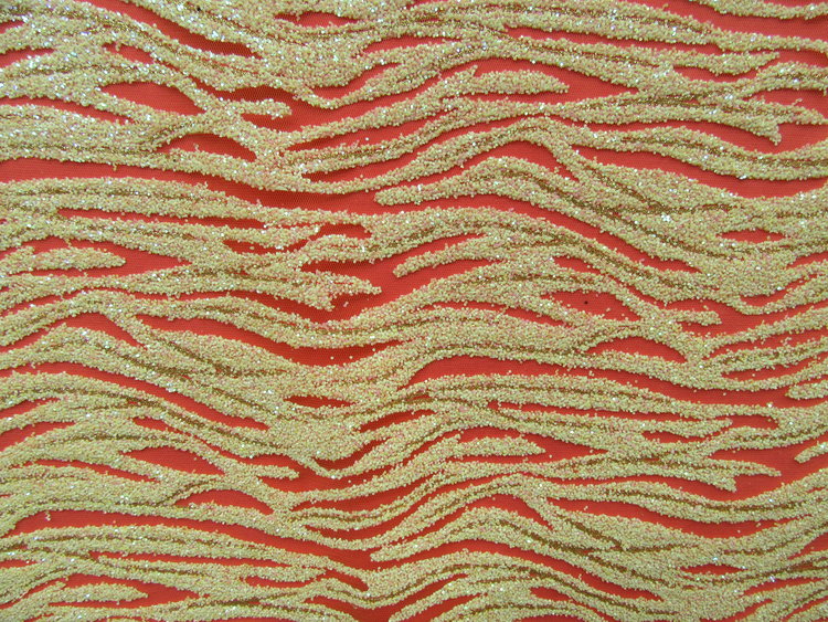 IVORY/PEARL COLOR GLU GLITTER SEWN ON 100 % POLYESTER IVORY COLOR MESH .