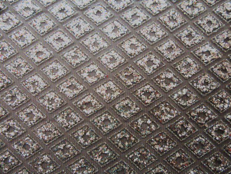 GOLD COLOR GLU GLITTER SEWN ON 100 % POLYESTER BLACK COLOR MESH .