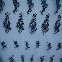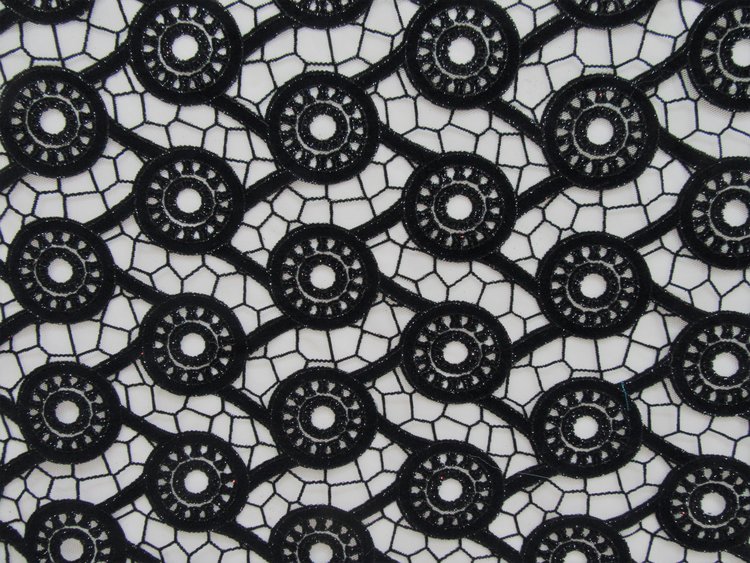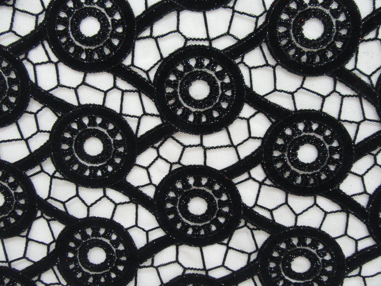 FANCY METALIC CIRCLE DESIGN SEWN ON 100 % P0LYESTER BEIGE TULL MESH