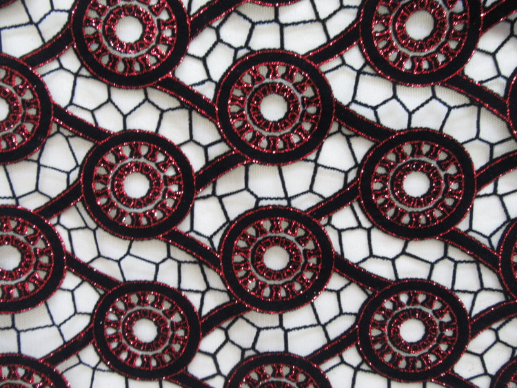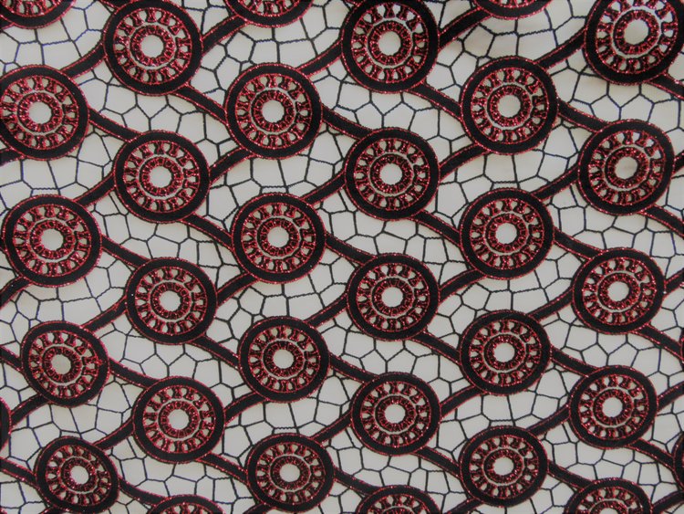FANCY METALIC CIRCLE DESIGN SEWN ON 100 % P0LYESTER BEIGE TULL MESH