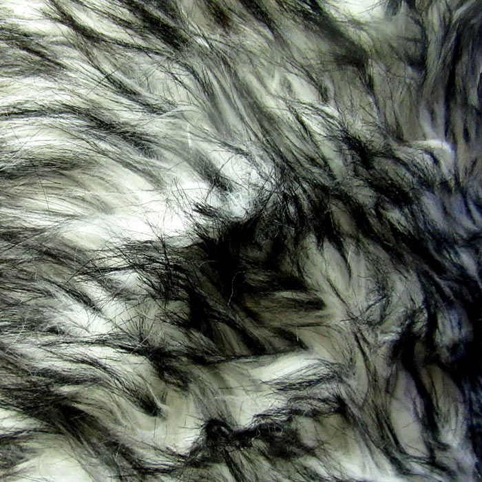 NON STRETCH BLACK/WHITE HUSKY FAUX FUR SEWN ON 50% ACRYLIC AND 50% POLYESTER.