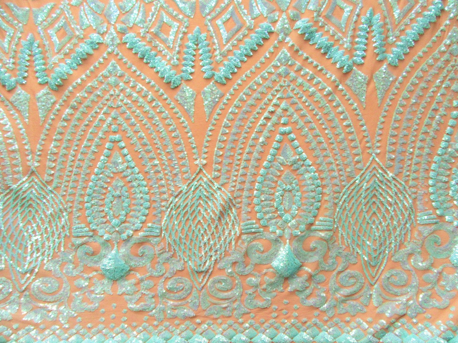 TWO WAY STRETCH SHINY SEQUINE SEWN ON 100 % POLYESTER NUDE MESH . USAGE : COSTUME , DANCE , DRESS FOR SPECIAL OCCASION .