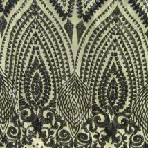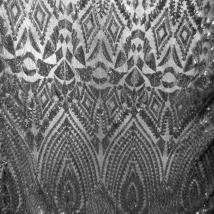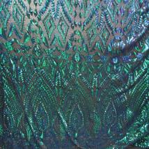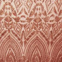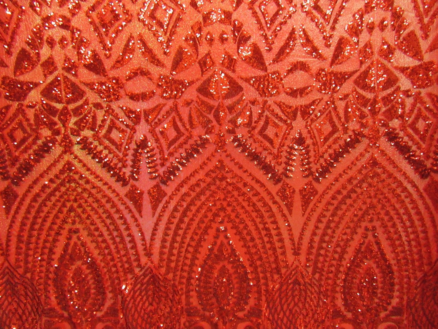TWO WAY STRETCH 2 MM SEQUINE SEWN ON 100 % POLYESTER RED MESH . USAGE : COSTUME , DANCE , DRESS FOR SPECIAL OCCASION .