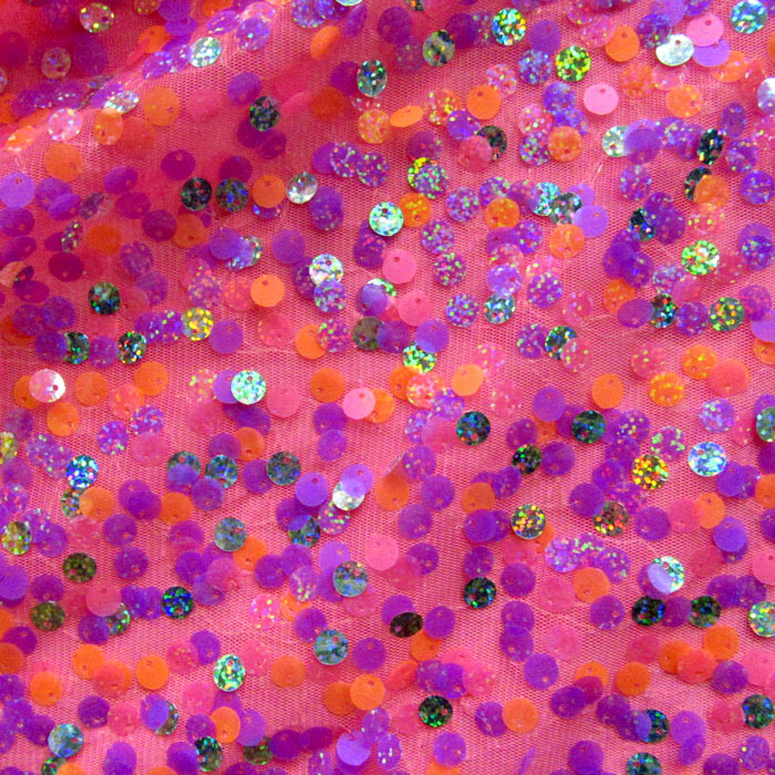 5MM MULTI COLOR SEQUINE SEWN ON 100% POLYESTER NEON PINK MESH