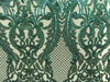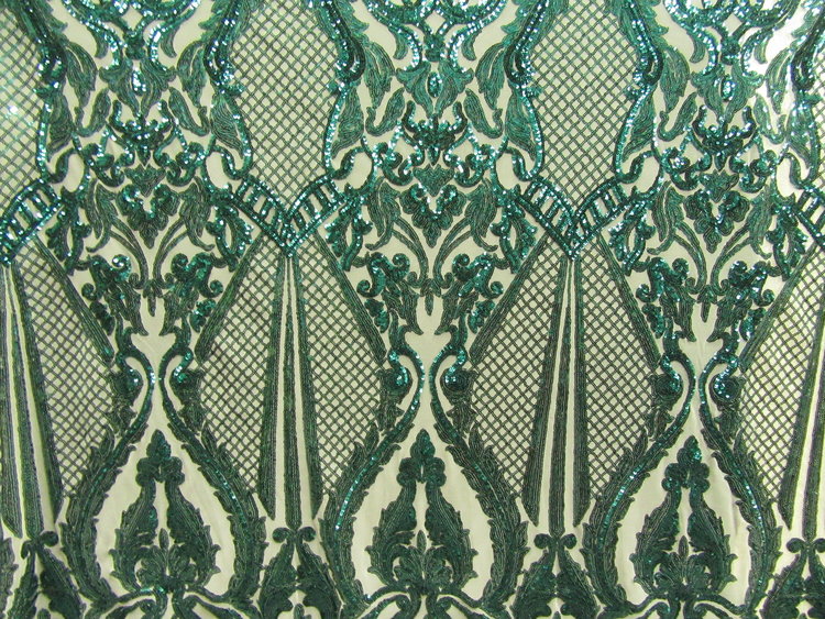 2 MM EMBROIDERY DESIGN GREEN COLOR SEQUINE SEWN ON THE NUDE COLOR 90 % NYLON 10 % TWO WAY STRETCH MESH .