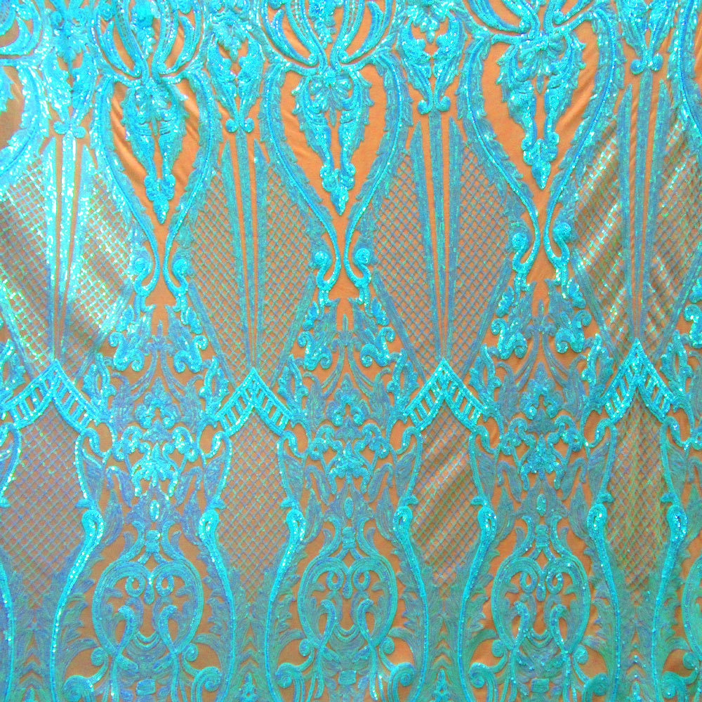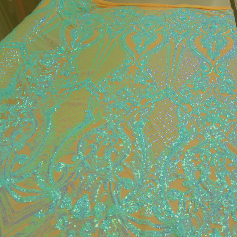 NET DESIGN MINT/PEARL COLOR SEQUINE SEWN ON 90 % POLYESTER 10 % NUDE COLOR STRETCH MESH .