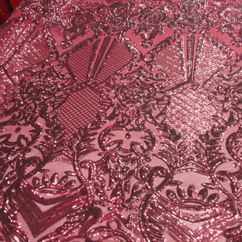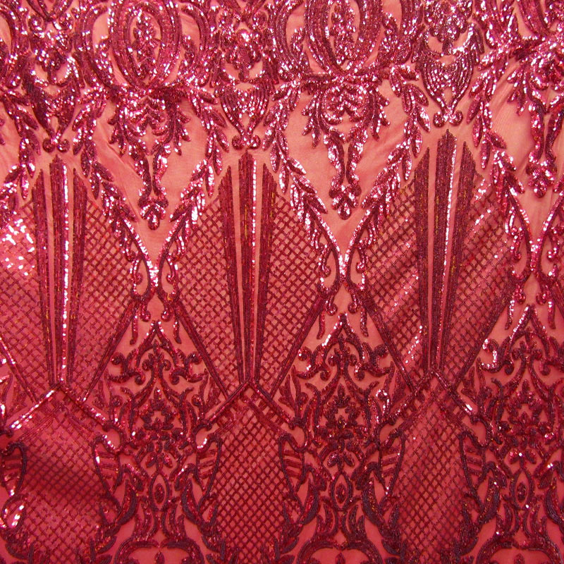 NET DESIGN BURGANDY COLOR SEQUINE SEWN ON 90 % POLYESTER 10 % BURGANDY COLOR STRETCH MESH .