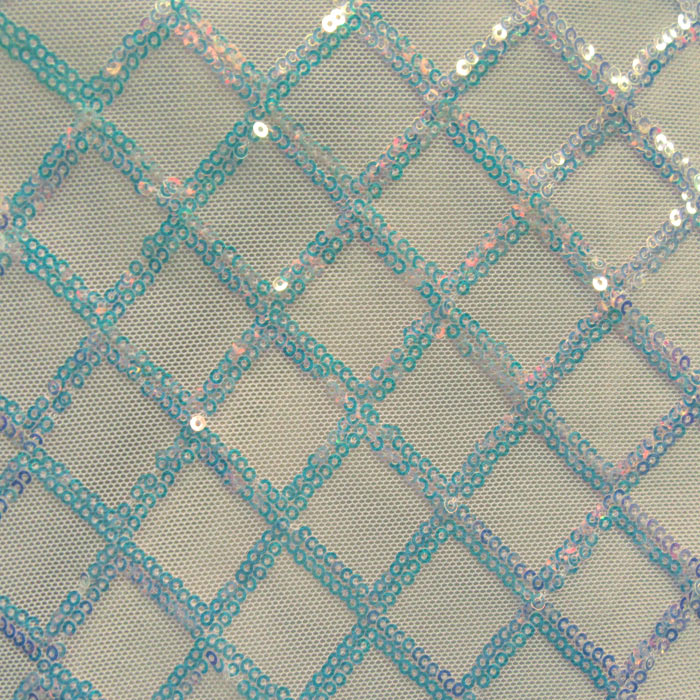 2MM WHITE/PEARL DIAMOND DESIGN SEQUINE SEWN ON 100% WHITE COLOR STRETCH MESH.