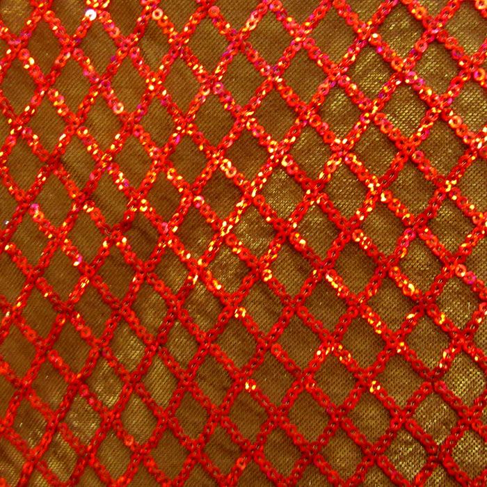 2MM RED COLOR DIAMOND DESIGN SEQUINE SEWN ON 100% BLACK COLOR STRETCH MESH.