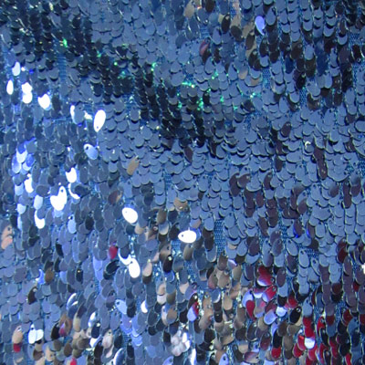 OVAL SHAPED ROYAL COLOR SEQUINE ON 100 % POLY NAVY MESH . USAGE : COSTUME , DANCE , SPECIAL OCCASION FOR DRESS .