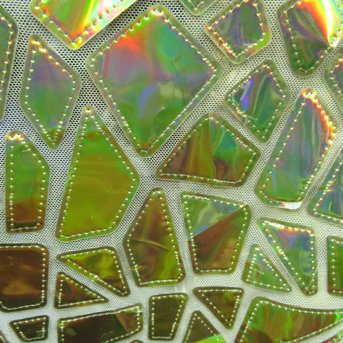 BIG PATCH DESIGN GOLD COLOR SEUINE SAWING WITH 90% POLYESTER AND 10% STRETCH IVORY MESH.