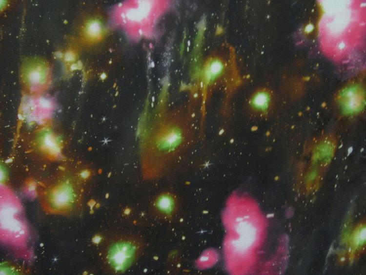 NON STRETCH GALAXY DESIGN PRINTED ON 100 % POLYESTER CHIFFON .