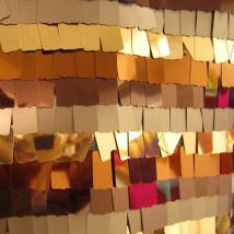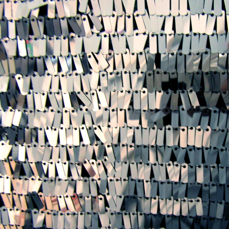 RECTANGLE SEQUINE SILVER COLOR SEWN ON BLACK COLOR STRETCH MESH.
