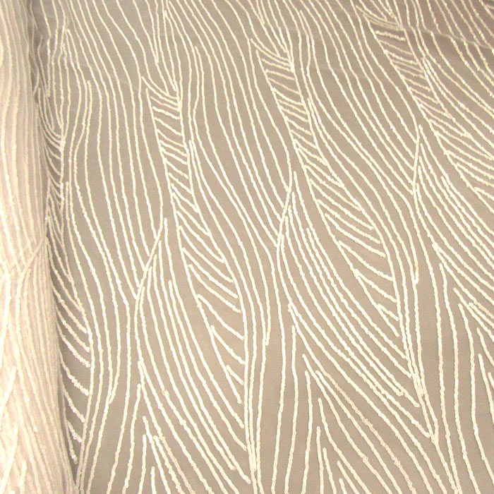 BLACK/WHITE SEQUINE WITH PANEL DESIGN SEWN ON 100% POLYESTER STRETCH MESH.