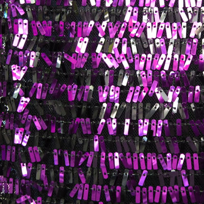 SHINY BLACK/PURPLE SEQUINE ALL OVER 95% POLY 5%SPANDEX ON POLY MESH