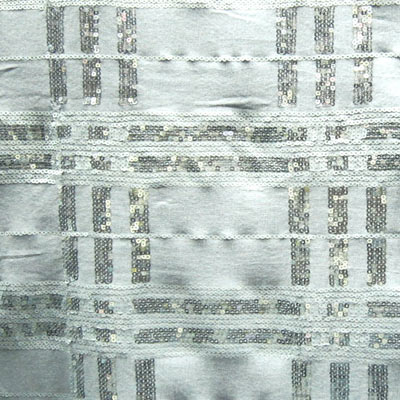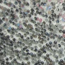 TWO WAY STRETCH SILVER SEQUIN ON GRAY COLOR LIGHT WEIGHT COTTON POLY SPANDEX.