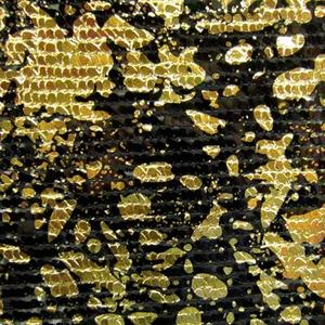 Black Oval Shaped Sequins and Gold Foil on Black Stretch Mesh