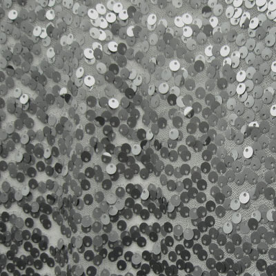 Gray Matte Colored Sequins on Gray Stretch Mesh