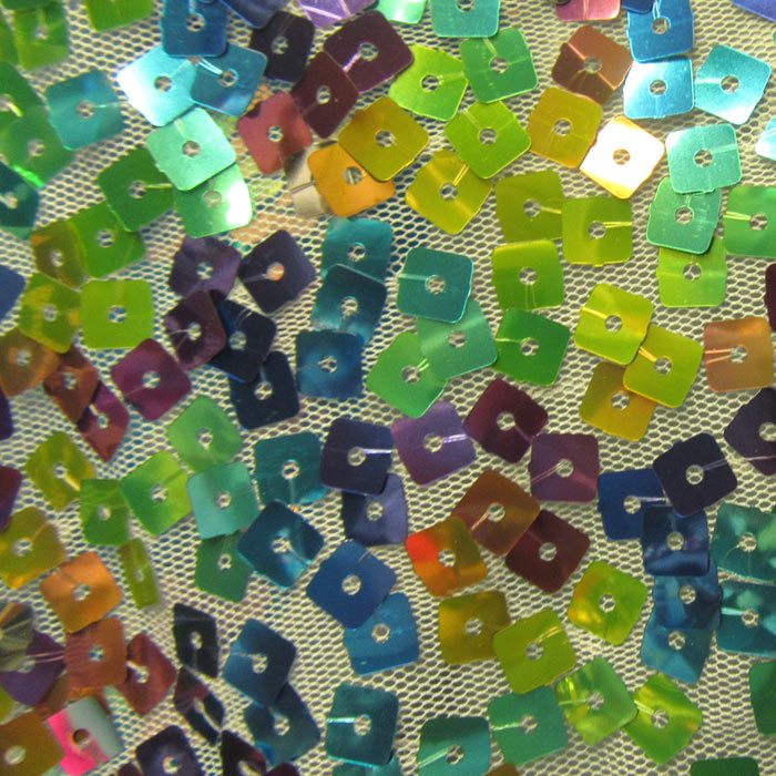 5MM SQUIRE MULTI COLOR SEWN ON WNITE COLOR MESH.