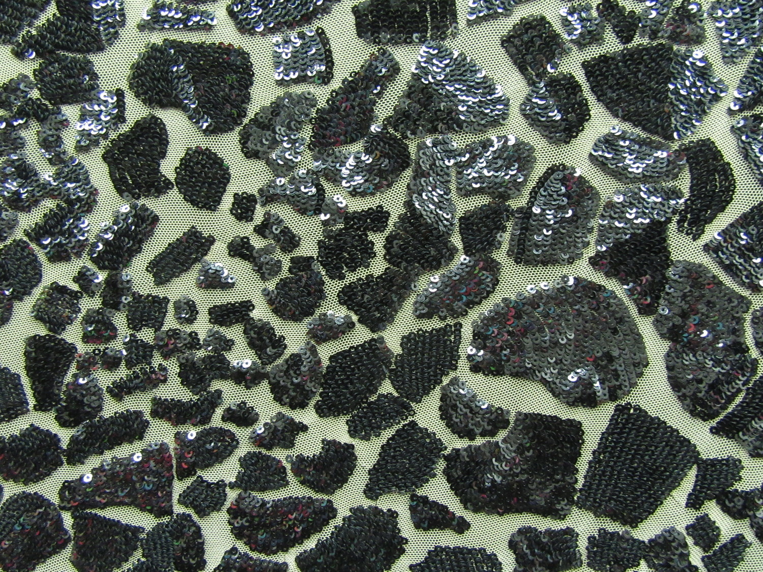 TWO WAY STRETCH SHINY BLACK COLOR SEQUINE 86 % NYLON 14 % STRETCH NUDE COLOR MESH . USAGE : COSTUME , DANCE , DRESS FOR SPECIAL OCCASION . (SH-JT-006)