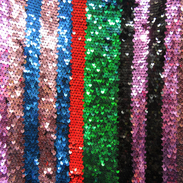 MULTI COLOR SEQUINE SEWN ON 100 % POLYESTER BLACK COLOR MESH .